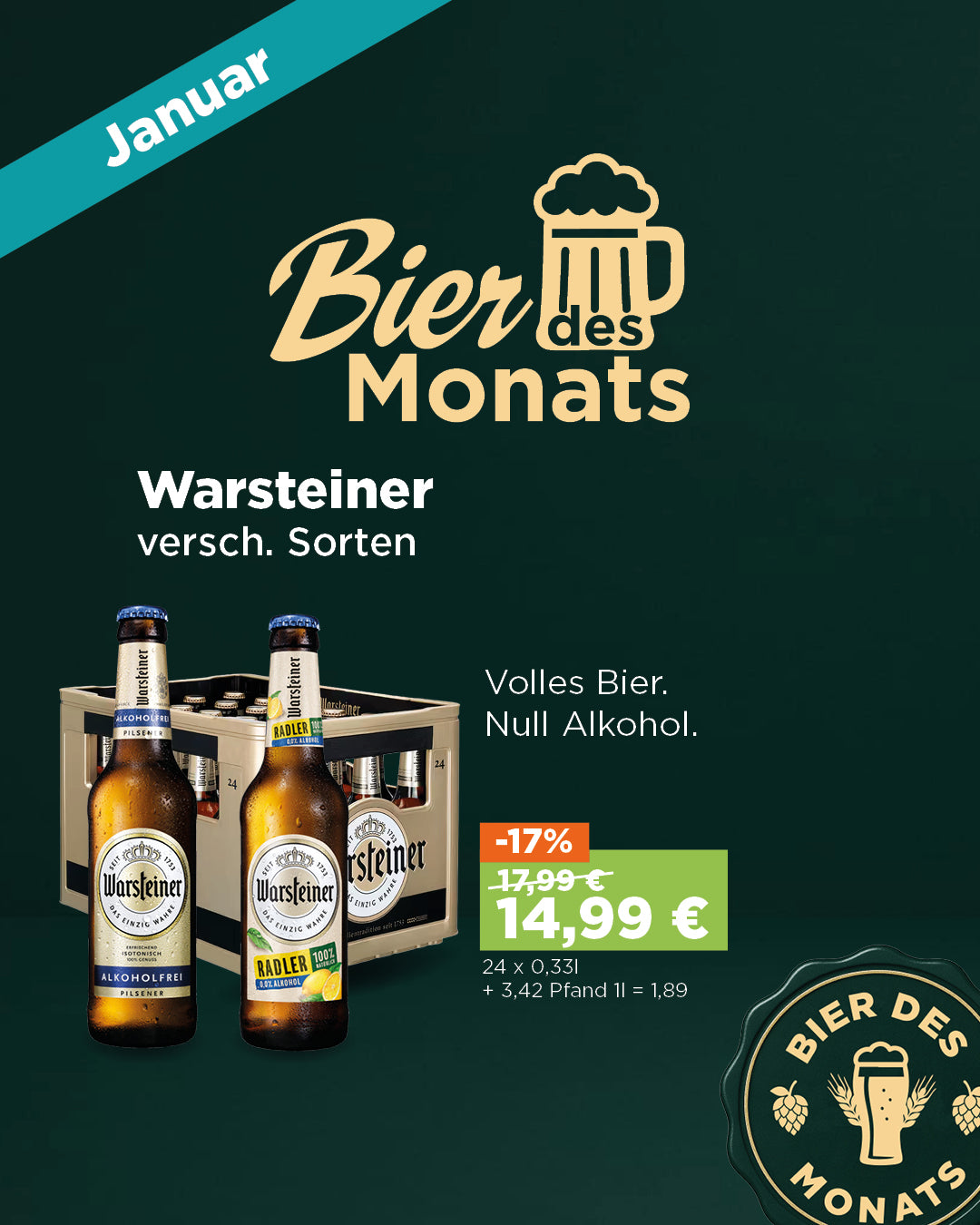 Preis: 17,99 €Angebotspreis: 14,99 €zzgl. 3,42 € PfandGrundpreis: € 1,89pro l -